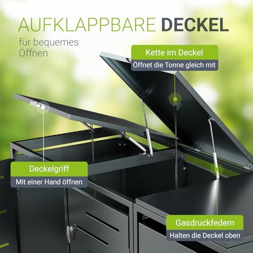 Juskys Mülltonnenbox Arel 3er - Metall Gartenbox für 120 BZW. 240 Liter Mülltonnen - Aufbewahrungsbox abschließbar - Unterstand mit Dach & Gasdruckfeder - Anthrazit