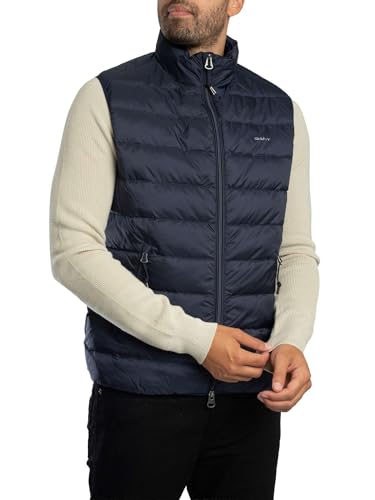 GANT Herren Daunenweste - LIGHT DOWN VEST, leichte Steppweste, Stehkragen, Zip, blau, M