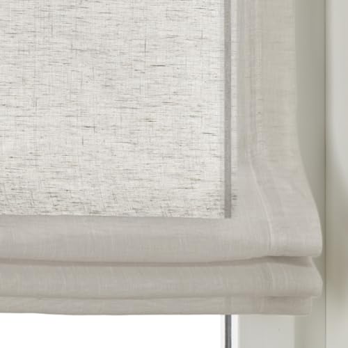 Raffrollo mit Ösen Brondy Taupe Natur halbtransparent Leinenoptik Raffgardine mit Hakenaufhängung ohne Bohren Breite 45 cm x Höhe 140 cm