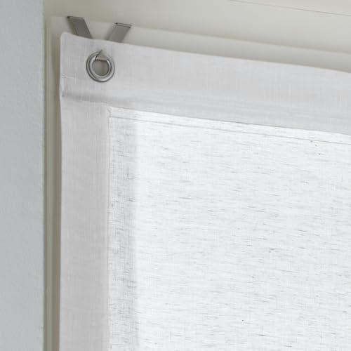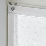 Raffrollo mit Ösen Brondy weiß halbtransparent Leinenoptik Raffgardine mit Hakenaufhängung ohne Bohren Breite 45 cm x Höhe 140 cm