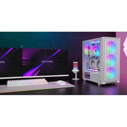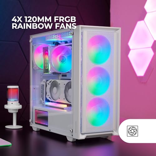 MARSGAMING MC-AIR, Gaming ATX-Gehäuse, 4X FRGB Rainbow 120mm Lüfter, Mesh-Frontpanel, Komplettes Seitliches Hartglasfenster, Doppelkammersystem, Unterstützung für Wasserkühlung, Weiß