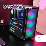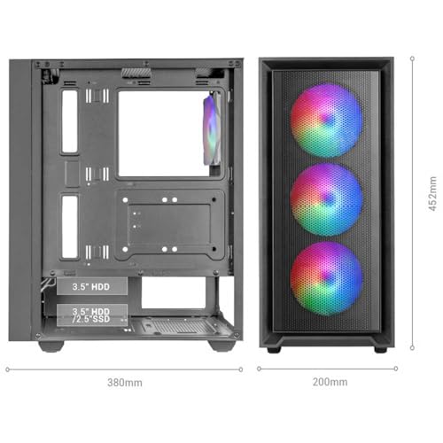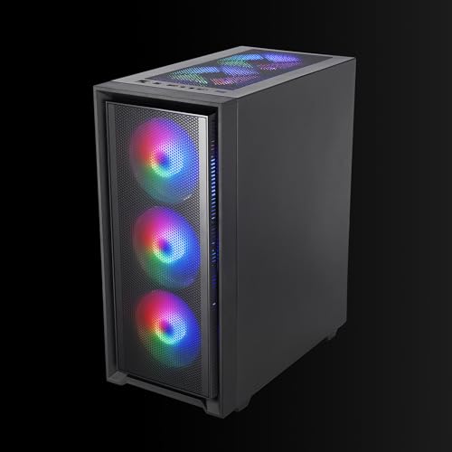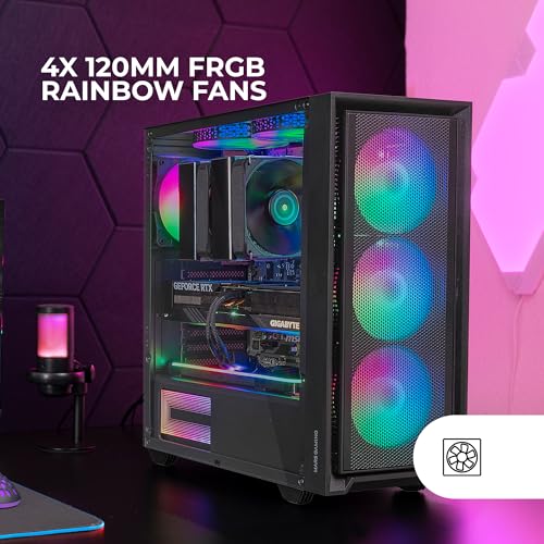 MARSGAMING MC-AIR, Gaming ATX-Gehäuse, 4X FRGB Rainbow 120mm Lüfter, Mesh-Frontpanel, Komplettes Seitliches Hartglasfenster, Doppelkammersystem, Unterstützung für Wasserkühlung, Schwarz