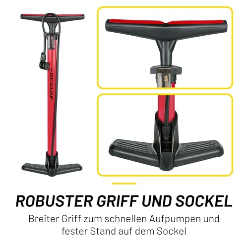 Dunlop Fahrradpumpe - Luftpumpe Fahrrad für Dunlop-, Schrader- und Französisches Ventil - Standluftpumpe inkl. Adapter für Wasserspielzeug und Bälle - Roller- und Autoreifen