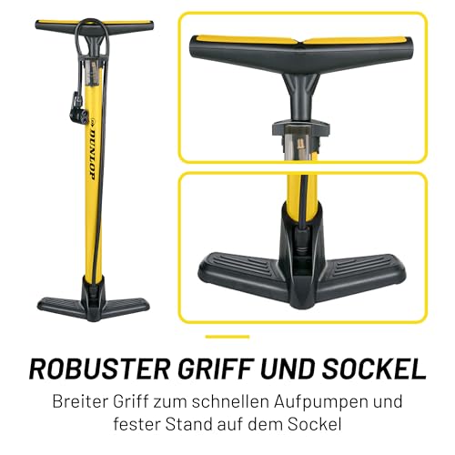 Dunlop Fahrradpumpe - Luftpumpe Fahrrad für Dunlop-, Schrader- und Französisches Ventil - Standluftpumpe inkl. Adapter für Wasserspielzeug und Bälle - Roller- und Autoreifen