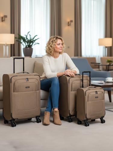 REDOLZ Koffer-Set 3-teilig für Damen & Herren | leichte & stabile Reise-Trolleys, hochwertiges Softcase, 4 Doppelrollen & TSA-Schloss |erweiterbar mit Dehnfalten (Essentials 12)