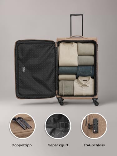Redolz, Koffer, Essentials 12 THREE SET 4 Rollen Kofferset 3-teilig mit Dehnfalte, Braun, (201 l)