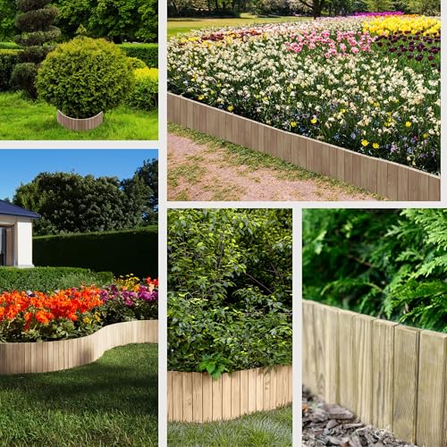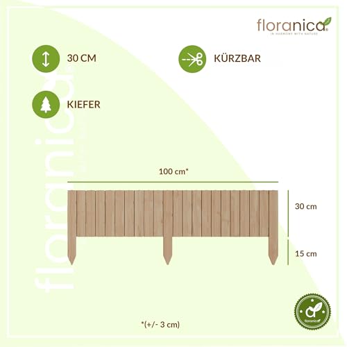 Floranica Flexible Beeteinfassung imprägnierte Rasenkante 100 cm (kürzbar) Beetumrandung aus Kiefernholz Gartenzaun Steckzaun Holzzaun Dekozaun Rollboarder Beetzaun (Unbehandelt, 30 cm)