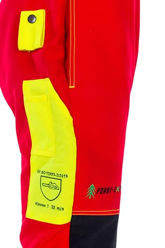 Forst-Extrem Beginner 2.0 Schnittschutzhose, Schnittschutzklasse 1 (20 m/s), anthrazit-orange oder rot-gelb (DE/NL/SE/PL, Alphanumerisch, S, Regular, Regular, rot-gelb)