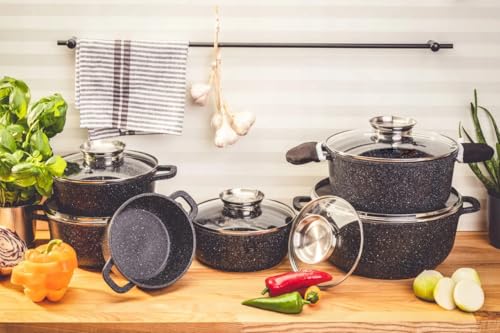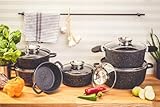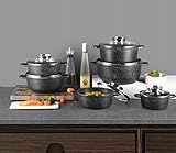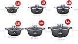 Klönberg Induktions-Topfset, Aluguss-Topf mit Antihaftbeschichtung, Topfset mit Glasdeckel für alle Herdarten, auch Induktionsherde (Schwarz., 12 tlg)