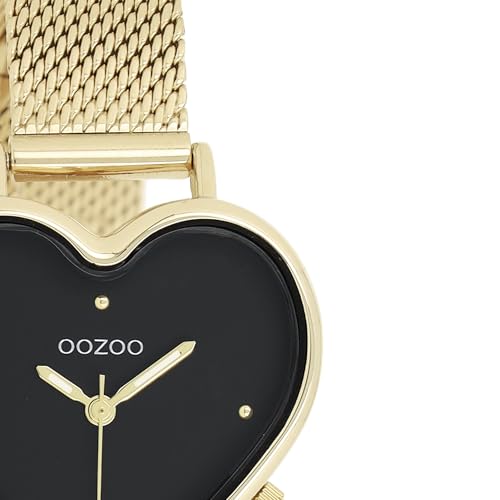 Oozoo - Timepieces Damen Uhr in Gold/schwarz | Armbanduhr Damen mit Edelstahlarmband | Moderne Uhr für Frauen | Edle Analog Damenuhr in Herzform C11417 (28x29mm Gehäuse)