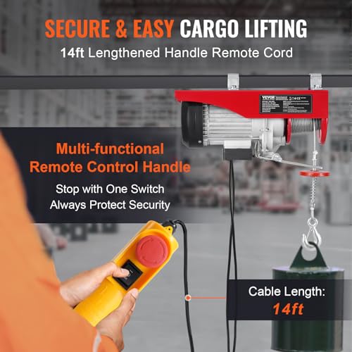 VEVOR Elektrischer Flaschenzug, 1760 lbs 230 v elektrische Seilwinde mit 14 Fuß kabelgebundener Fernbedienung, 40 Fuß Hubhöhe mit Einzelkabel,
