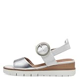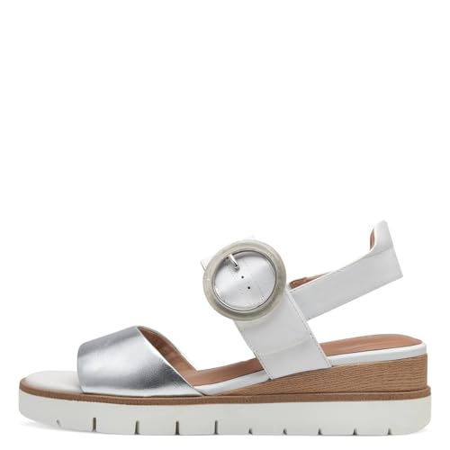 Keilsandalette TAMARIS Tamaris Sandalen Leder, Damen, Gr. 38, weiß (weiß, silber), Leder, Schuhe