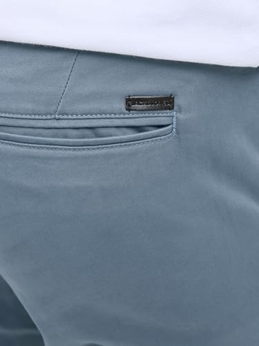 Chinos JACK & JONES JPSTMARCO mit Stretchkomfort und schmalem Bein, Herren, Gr. 28, Länge 30, grau (stormy weather), Web, Obermaterial: 98% Baumwolle, 2% Elasthan, unifarben, slim fit normal, Hosen, mit Reißverschluss