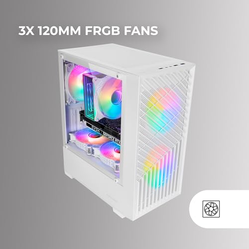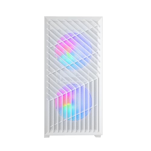 Mars Gaming MC-Vortex, MicroATX Gaming-Gehäuse, Geometrisches Mesh-Frontpanel, Seitenscheibe aus gehärtetem Glas, 3X 120mm FRGB Rainbow Lüfter, Kompaktes PC-Gehäuse mit Doppelkammere-Design, Weiß