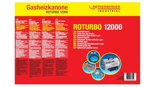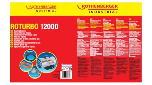 ROTHENBERGER Industrial Gasheizgebläse Gasheizer Heizkanone Heizgerät mit Piezo-Zündung, Schlauch, Regler RoTurbo 12000 | 930° Flammentemperatur | inkl. Bluetooth Lautsprecher bis 30 Std. Betriebszeit