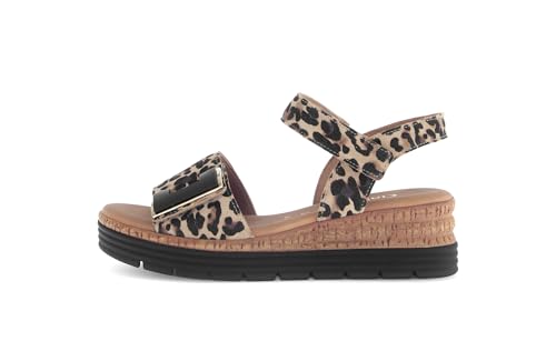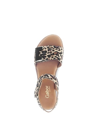Keilsandalette GABOR GENUA, Damen, Gr. 36, braun (leo), Ziegenveloursleder, animal-print, Schuhe, Riemchensandale, Komfortschuh, Schmuckelement, G-Weite