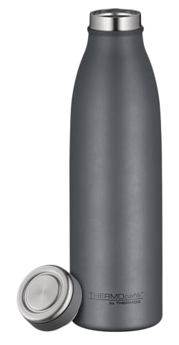 THERMOcafé by THERMOS TC BOTTLE graphite grey mat 0,50l, Isolierflasche aus Edelstahl, kohlensäurefest, 12h heiß 24h kalt, Auslaufsicher, für Schule, Unterwegs & Büro