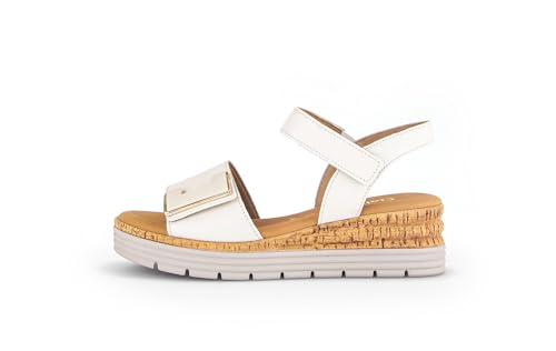 Gabor Damen Keilsandalen, Frauen Sandalen,Leichte Mehrweite (G),Strandschuhe,Keilsandaletten,Keilabsatz,bequem,Creme (Uni+Gold),39 EU / 6 UK