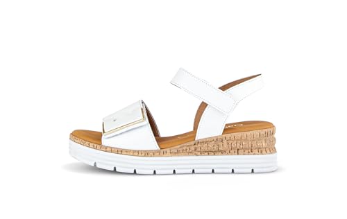 Gabor Damen Keilsandalen, Frauen Sandalen,Leichte Mehrweite (G),Strandschuhe,Keilsandaletten,Keilabsatz,bequem,Weiss (Uni+Gold),42 EU / 8 UK