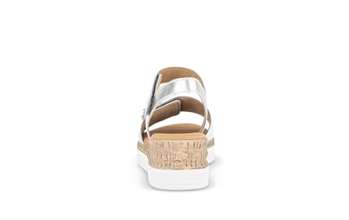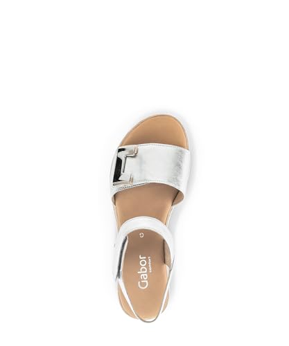 Gabor Damen Keilsandalen, Frauen Sandalen,Leichte Mehrweite (G),Wedge-Heel,flach,Sommerschuhe,Freizeitschuhe,Silber (Uni+Gold),42 EU / 8 UK