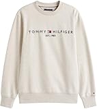 Tommy Hilfiger Herren Sweatshirt Tommy Logo ohne Kapuze, Beige (Heathered Oatmilk), XL