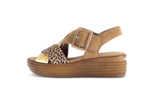 Gabor Damen Riemchensandalen, Frauen Sandalen,Sandaletten,Sommersandalen,bequem,Sommerschuhe,Freizeitschuhe,Walnut/Gold/Natur,39 EU / 6 UK