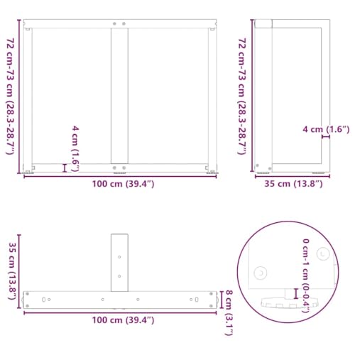 Esstischbeine T-Form 2 Stk. Schwarz 100x35x(72-73) cm Stahl - Vidaxl
