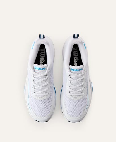 Wilson Rush Pro Lite Herren-Tennisschuhe, Ultraleichtes Gefühl und Starke Fußgewölbe-Unterstützung, Energiegeladene Leistung, Weiß/Atomic Blue/Navy Blazer, Größe 9,5