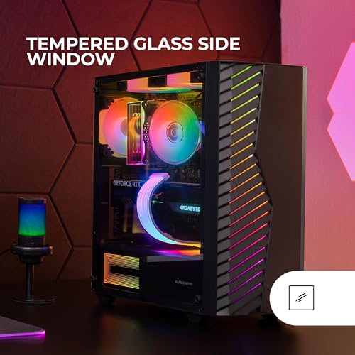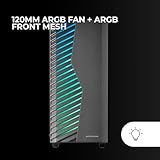 Mars Gaming MC-Volt, Gaming-ATX-Gehäuse, 120mm ARGB-Lüfter, Frontgitter mit ARGB, Vollseitiges Seitenfenster aus gehärtetem Glas, Kabelmanagement, Semi-Tower für Flüssigkühlung, Schwarz