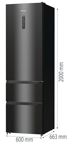 Hisense RM469N4AFD1 Kühl-Gefrierkombination/freistehend/EEK D/36dB/ NoFrost/368 Liter/XtremeFreeze/Smart Fresh/Metal Cooling/CrispZone/Convert ZeroZone/Eco Mode/HxBxT: 200x60x66,3 cm/Schwarz Inox