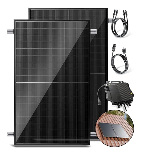 Solakon® 1000W Balkonkraftwerk mit Halterung (Ziegeldach, Paarmontage) - 800W komplett Steckdose - neuester 800W Wechselrichter - Solaranlage Komplettset - 500W bifaziale Solarmodule inkl. Zubehör