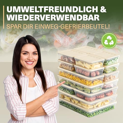 Viwares Stapelbare Gefrierdosen 16er Set, Gefrierfach & Kühlschrank Organizer mit Deckel, Frostfest bis -25°C, Wiederverwendbare Frischhaltedosen, Lebensmittel frisch und geruchsfrei lagern