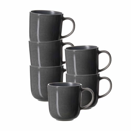 Ritzenhoff & Breker Portofino Kaffeebecher 6er Set, 400 ml, Runde Henkelbecher mit Farbverläufen, Skandinavisches Design mit Reaktivglasur, Steinzeug, Blaugrau