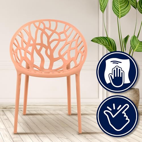 CLP 2er Set Gartenstühle Hope Kunststoff I Stapelstühle wetterfest und UV-beständig I Outdoorstühle pflegeleicht I Sessel für draußen, Farbe:pfirsich