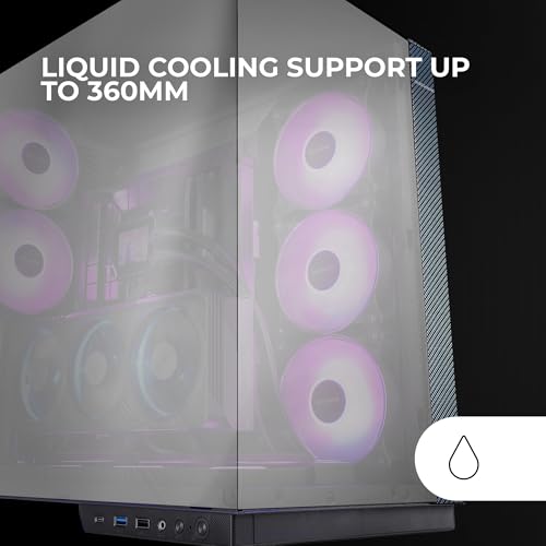 Mars Gaming MC-3GFPRO, Gaming-Gehäuse ATX, Dreifaches Verspiegeltes Glas, 2X 120mm ARGB-Lüfter, Vertikale GPU-Montage, PC-Tower mit Unterstützung für Flüssigkeitskühlung bis zu 360mm, Carbonfaser