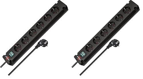 Brennenstuhl Bremounta Steckdosenleiste 6-Fach mit Schalter (Mehrfachsteckdose mit 90 Grad Steckdosen, Steckerleiste mit Befestigungsmöglichkeit und 3m Kabel) schwarz (Packung mit 2)