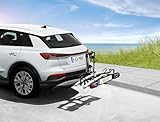 EUFAB 11554 Fahrradträger Bike Lift, E-Bike geeignet, komplett vormontiert, elektrische Absenkung, Diebstahlschutz, für 2 Fahrräder, für Anhängerkupplung, 2025 mit Strap-Rahmenhaltern
