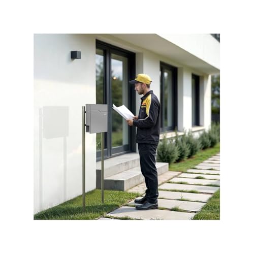 Metzler Standbriefkasten in Graualuminium - Pulverbeschichtet & mit Zeitungsfach - Inkl. Edelstahl Standfuß - Hochwertiger Briefkasten mit Zeitungsrolle und austauschbarem Namensschild Freistehend