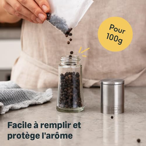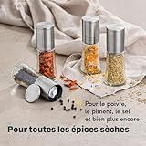 SILBERTHAL Gewürzmühlen 4er Set - verstellbares Keramikmahlwerk - Aromadicht - Salz- & Pfeffermühlen aus Glas und Edelstahl - Unbefüllt & Nachfüllbar