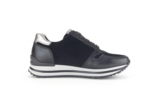 Gabor Damen Low-Top Sneaker, Frauen Halbschuhe,Komfortable Mehrweite (H),Freizeitschuhe,Turnschuhe,Laufschuhe,schwarz/antiksilb.,38 EU / 5 UK