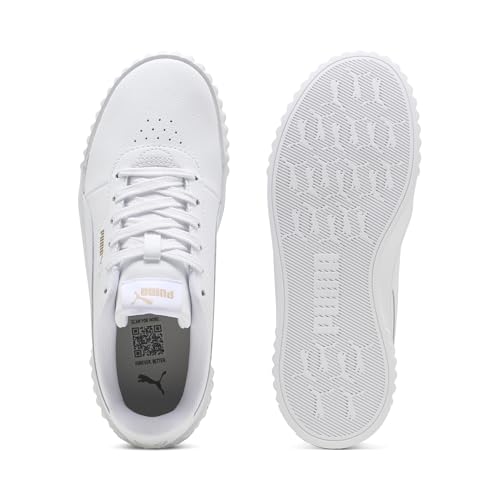 Sneaker PUMA Carina 3.0 Sneakers Damen, Damen, Gr. 38,5, weiß (weiß gold), Obermaterial: Textil, Kuhleder, Synthetik, Leder; Futter: Textil; Innensohle: Textil; Laufsohle: Gummi, Schuhe Sneaker