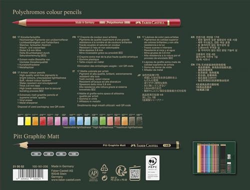 FABER-CASTELL 210052 - Zeichenset 23-teilig mit Polychromos Buntstifte und Bleistifte Pitt Graphite Matt, inkl. Anspitzer und Radierer
