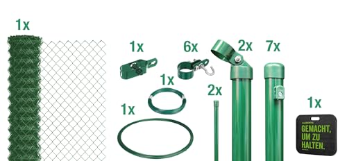 Alberts 697044 Maschendrahtzaun als Zaun-Komplettset, zum Einbetonieren mit Kniekissen | verschiedene Längen und Höhen - wahlweise in verschiedenen Farben | grün | Höhe 100 cm | Länge 15 m