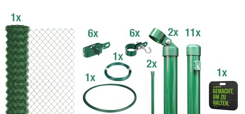 Alberts 697037 Maschendrahtzaun als Zaun-Komplettset, zum Einbetonieren mit Kniekissen | verschiedene Längen und Höhen - wahlweise in verschiedenen Farben | grün | Höhe 80 cm | Länge 25 m