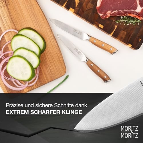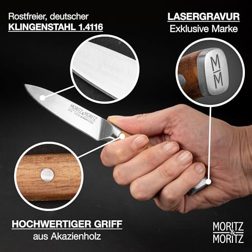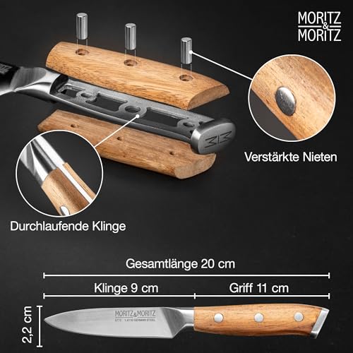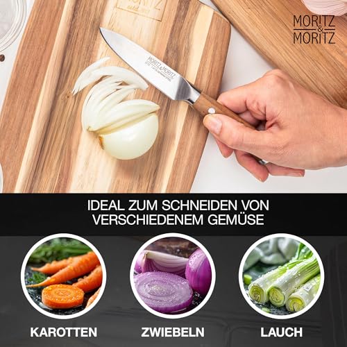 Moritz & Moritz Gemüsemesser 9 cm - Kleines Obstmesser mit scharfer Klinge - Schälmesser für präzises Schneiden - Ergonomischer Griff aus Akazienholz - Allzweckmesser aus deutschem Messerstahl