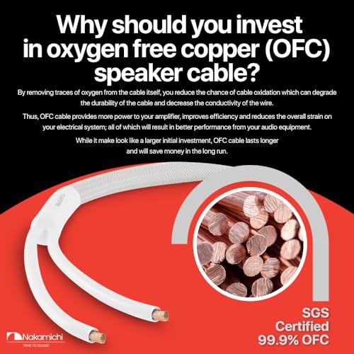 Nakamichi 24K vergoldeter Bananenstecker mit Lautsprecherkabel, 99,9% sauerstofffreies Kupfer (OFC), robustes geflochtenes Kabel, CL2-zertifiziert - Weiß (12AWG / 15 Fuß / 4,5 Meter) 2er-Pack