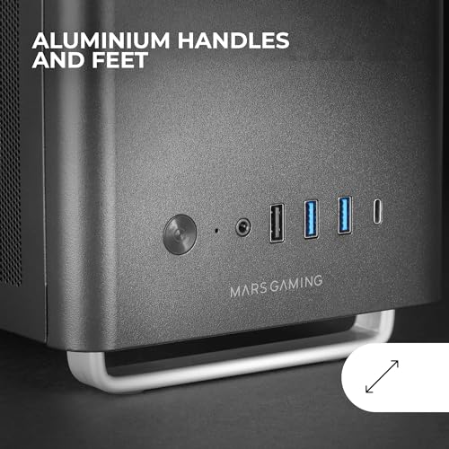 Mars Gaming MC-Elite, Hochleistungs Micro-ATX PC Gehäuse aus Metall, Seiten und Top Mesh Design, 3X FDB-Lüfter, Mini Tower Aluminiumgriffen und Füßen, Dual ATX und SFX Netzteilunterstützung, Schwarz