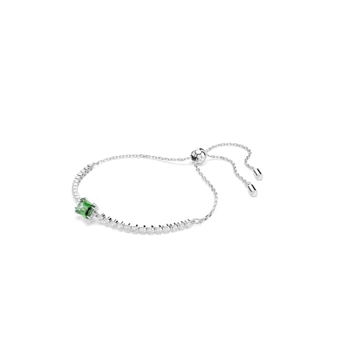 Swarovski Matrix Tennisarmband, Grünes, Rhodiniertes Armband mit Strahlenden Kristallen in Verschiedenen Schliffen
