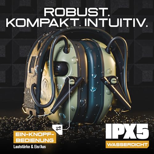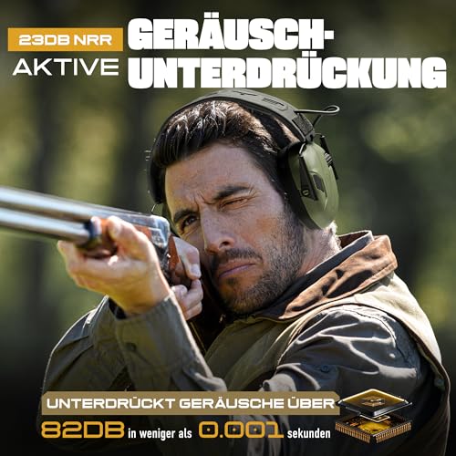 Earmor M300A Elektronischer Gehörschutz - Ergonomische Gel-Polster, IPX5 Wasserdicht, Geräuschreduzierender Kopfhörer für Outdoor und Sport, Faltbares Schutzdesign (Grün)