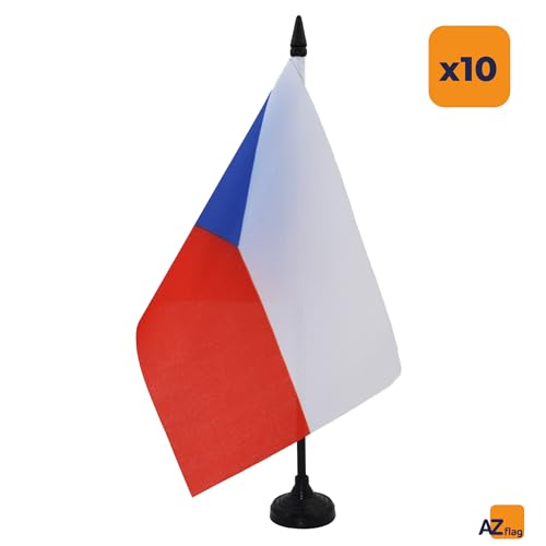 AZ FLAG 10 Tischflagge Tschechische Republik, 21 x 14 cm, 10 kleine tschechische Flaggen, 100% Polyester, mit Fahnenstange von 25 cm und Sockel aus schwarzem Kunststoff